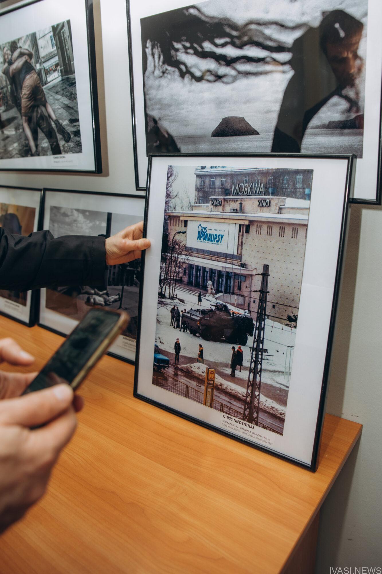 Особливою цінністю виставки є робота відомого польського фотографа Криса Ниденталя – культовий знімок «Воєнний стан у Варшаві, 1981 р.». Зображення військової техніки біля кінотеатру «Москва» з афішею фільму «Апокаліпсис наших часів» стало символом того часу і було опубліковано в американському виданні Newsweek.