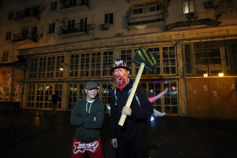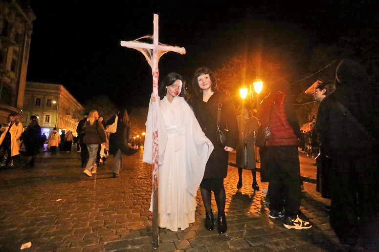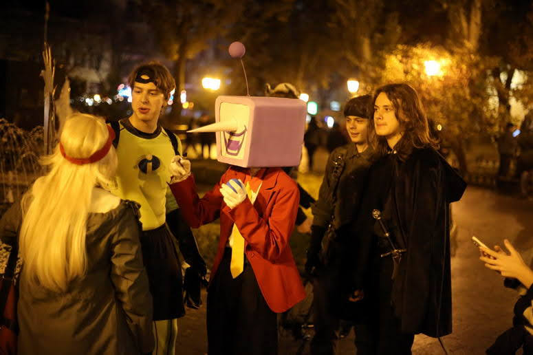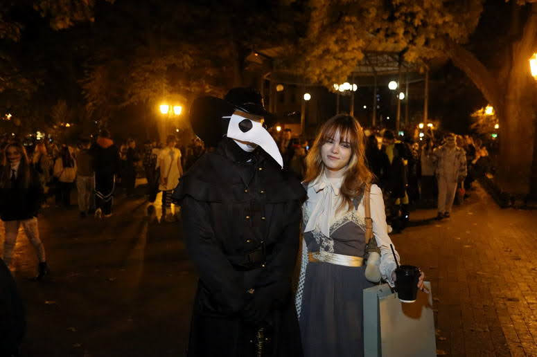 Сегодня 31 октября на Хэллоуин одесситы уже традиционно собрались на вечере на Дерибасовской в костюмах монстров, ведьм и разных героев киноужасов. Этот западноевропейский праздник полюбился особенно юным одесситам школьного и студенческого возраста. В праздничном вечернем карнавале приняли участие даже маленькие дети, которые становятся смелее. Отметим, что в этом году очень мало вырезали страшных голов из тыквы.
