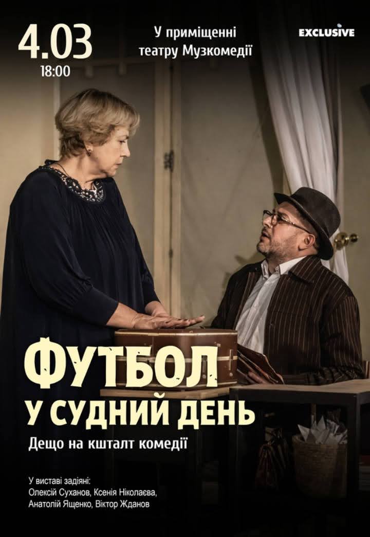 В Одессу везут гастрольное представление киевского театра «Созвездие» — «Футбол в Судный день», кое-что на сборник комедии (по пьесе «Сложные люди» всемирноизвестного драматурга Йосефа Бара-Иосефа).Мир качается от крушения к крушению, войны разрушают человеческие судьбы, оставляя отражение ужаса в душах. Однако иногда приходит осознание, что каждое событие жизни человека – повод для любви.