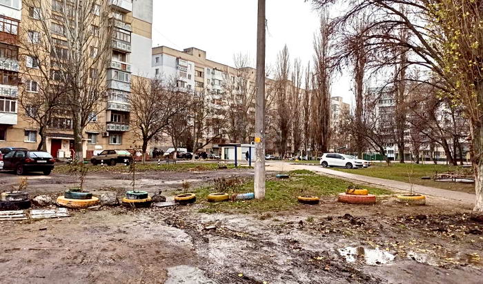 На проспекте Небесной сотни, между “зданиями” 14/3 и 18 территория, которую должны были капитально отремонтировать выглядит вот так: