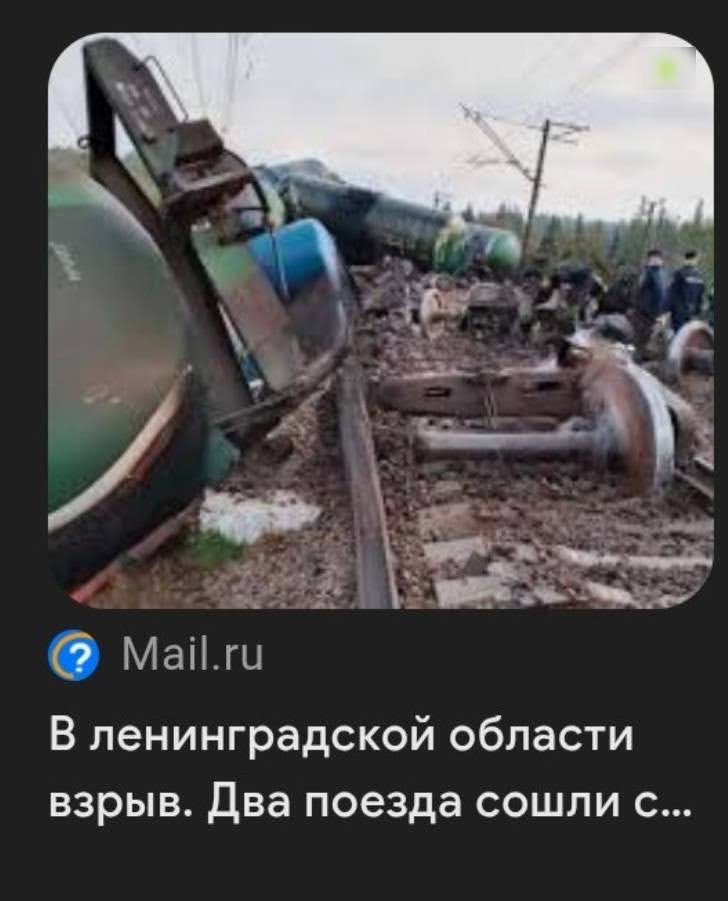Выяснилось, что это фото из происшествия, когда поезд действительно пустили под откос, но есть нюанс. Это сделало украинское подполье в России. Событие произошло в Ленинградской области 14 сентября 2025 года.