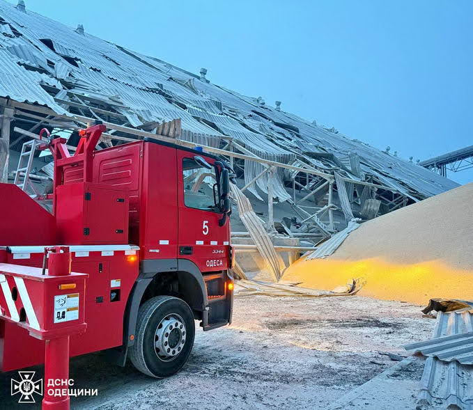 Минувшей ночью 18 апреля под Одессой российские беспилотники атаковали гражданские объекты. Как сообщили в Одесской ОВА и ГСЧС, поражены административные здания, складские помещения с зерном, стоянка автобусов и грузовых автомобилей. В результате взрывов начались пожары, сгорел автотранспорт. По предварительной информации, пострадал один человек.