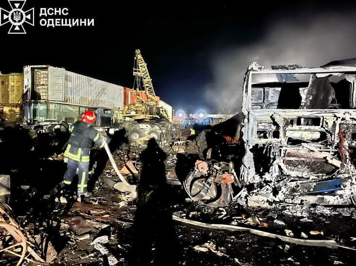 Прошлой ночью 23 февраля более 10 российских дронов-камикадзе атаковали Черноморск. Взрывы раздавались в порту и жилых кварталах. Как сообщили в Одесской ОВА, есть повреждения энергетической и гражданской инфраструктуры. Повреждены контейнеровозы. Один из беспилотников попал в квартиру в многоэтажном доме, к счастью, не взорвался. Погибла 20-летняя девушка и 45-летний мужчина.
