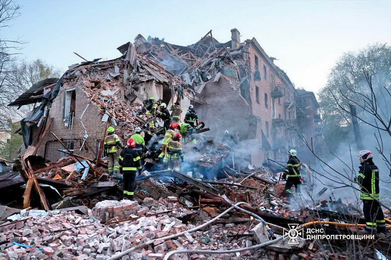 Россия массированно атаковала ночью 25 апреля мирный город Днепр ударными дронами, крылатыми и баллистическими ракетами. Атака продолжалась всю ночь и продолжилась утром. Террористические удары рашистов разрушили два многоквартирных дома в одном районе города. По состоянию на 12:00 под завалами обнаружили тела 3 погибших. По предварительным данным, 22 человека пострадали, среди них — ребенок.