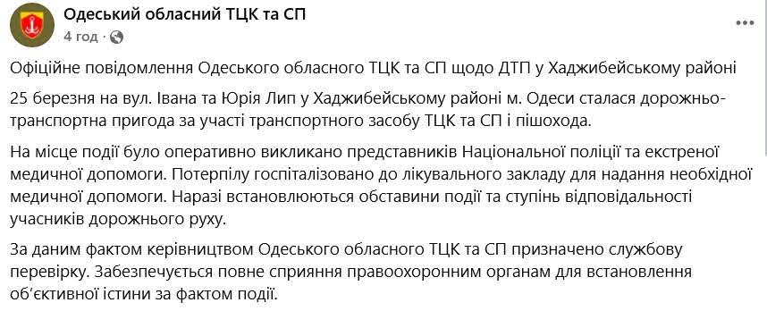 Позже в Одесском ТЦК и СП прокомментировали инцидент: «В настоящее время устанавливаются обстоятельства происшествия и степень ответственности участников дорожного движения. По данному факту руководством Одесского областного ТЦК и СП назначена служебная проверка. Обеспечивается полное содействие правоохранительным органам для установления объективной истины по факту
