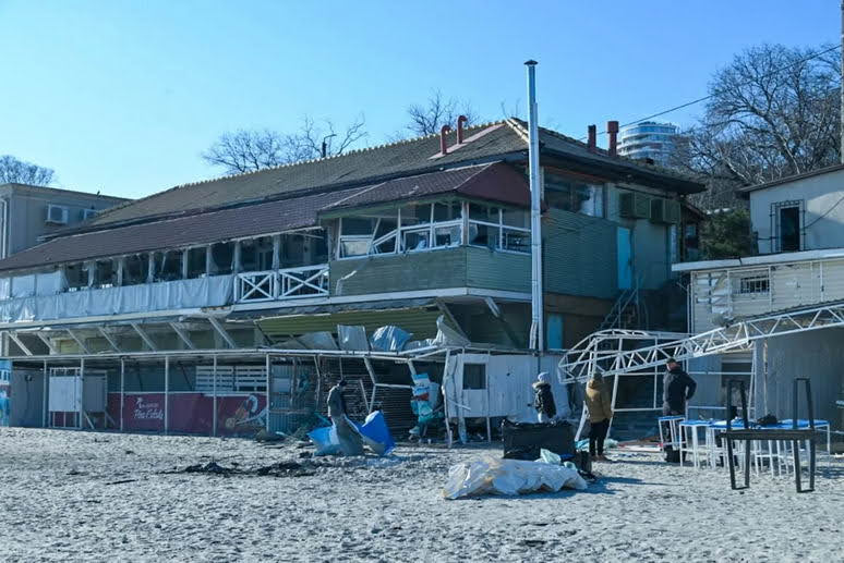 Во время последней ночной атаки по Одессе 13 января на пляже Ланжерон утром обнаружили кратер после взрыва и обломки российского дрона-камикадзе типа «шахед». От взрыва пострадали рестораны на набережной – в них повреждены фасады, выбиты окна. Информация о пострадавших не поступала. Фото опубликовала одесский фотограф Наталья Михайленко в Фейсбуке.
