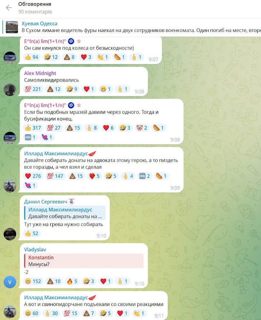 Мы не знаем, есть ли договоренность у администрации вышеназванных телеграмм-каналов с российскими оккупантами, но всю войну там происходят информационные диверсии из-за комментариев, а пренебрежение к военным было раньше даже в публикациях. Администрация телеграмм-каналов специально игнорирует российских ботов, которые чувствуют себя как дома. Скорее всего, именно во время таких диверсий и происходит вербовка одесских ждунов для диверсий. К сожалению, СБУ до сих пор не реагирует на эти информационные диверсии. Комментарии удаляются через 24 часа, но за это время они оказывают максимальное влияние на мнения людей, которые читают это и формируют свое мировоззрение под их влиянием.