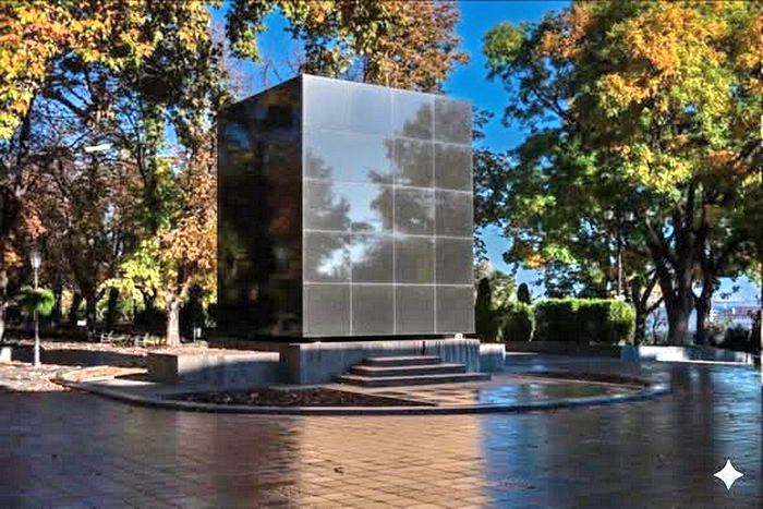 Отметим, что наша редакция поддерживает идею Михаила Ревы, которая будет выглядеть логически очень долгое время в условиях послевоенного времени. Черный куб с зеркальной поверхностью будет не только проявлением современного искусства, а также держать в себе идею памяти о самой войне как черной полосе в украинской истории.