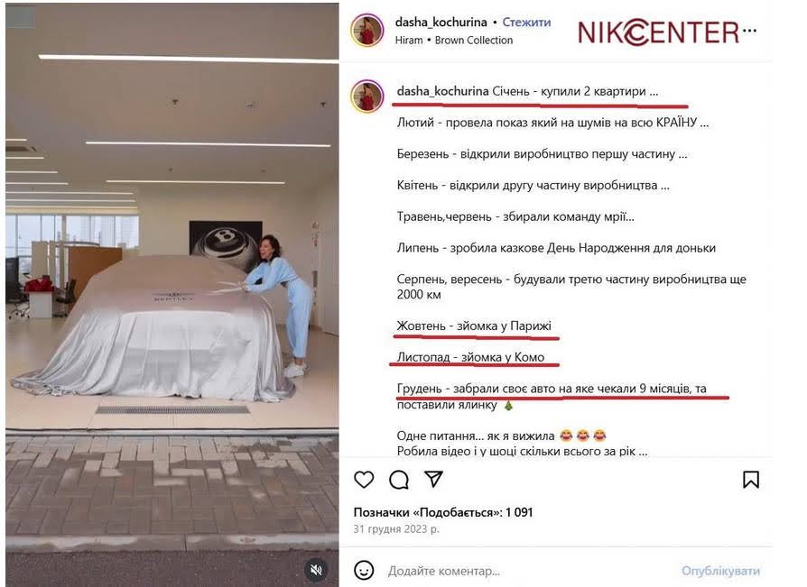 Он также сообщил, что по предварительным расчетам, бренд Lior Boutique в прошлом году должен заплатить 145 млн гривен налогов. Но благодаря схемам уклонения от налогов, где все записано на ФЛП, бизнес уходит в тень, а его владельцы получают сверхприбыли. Гетманцев взбешенно предупредил Дарью Кочурину, что ей нужно немедленно перевести бизнес на общую систему налогообложения, или он расскажет, как все это происходит.