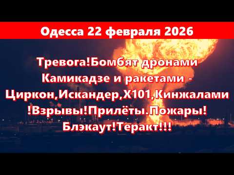 Одесса 22 февраля 2026.Тревога!Бомбят дронами Камикадзе и ракетами -Циркон,Искандер,Х101,Кинжалами! (22.02.26)